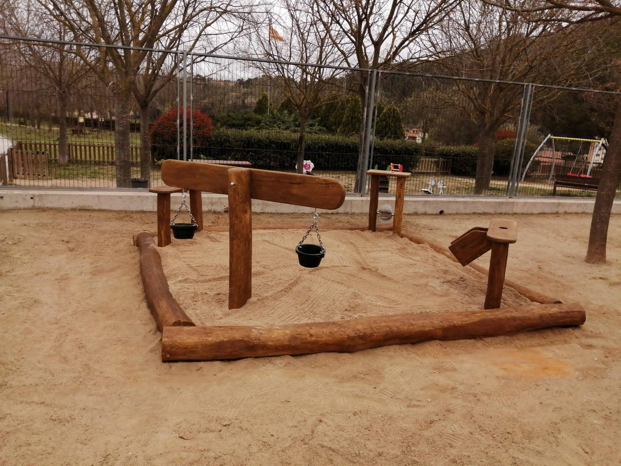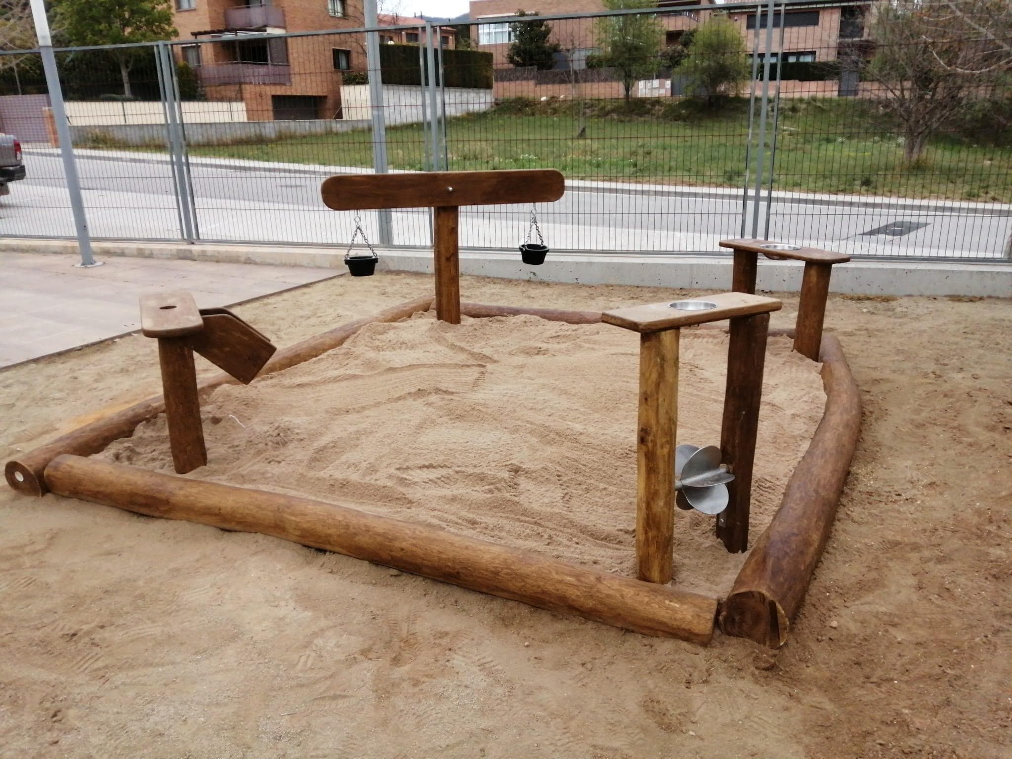 Juego de arenero de madera de acacia, con rampa para hacer bajar la arena.