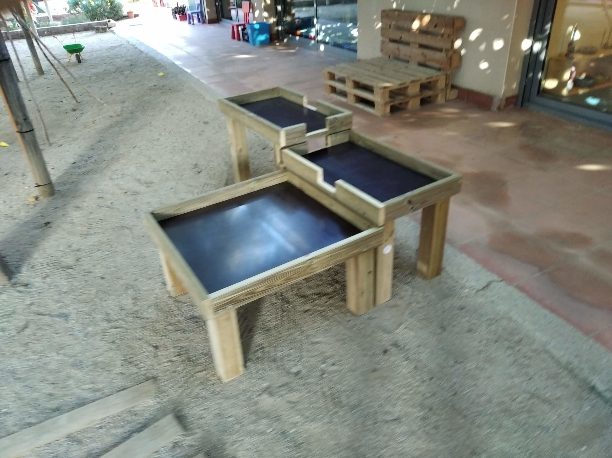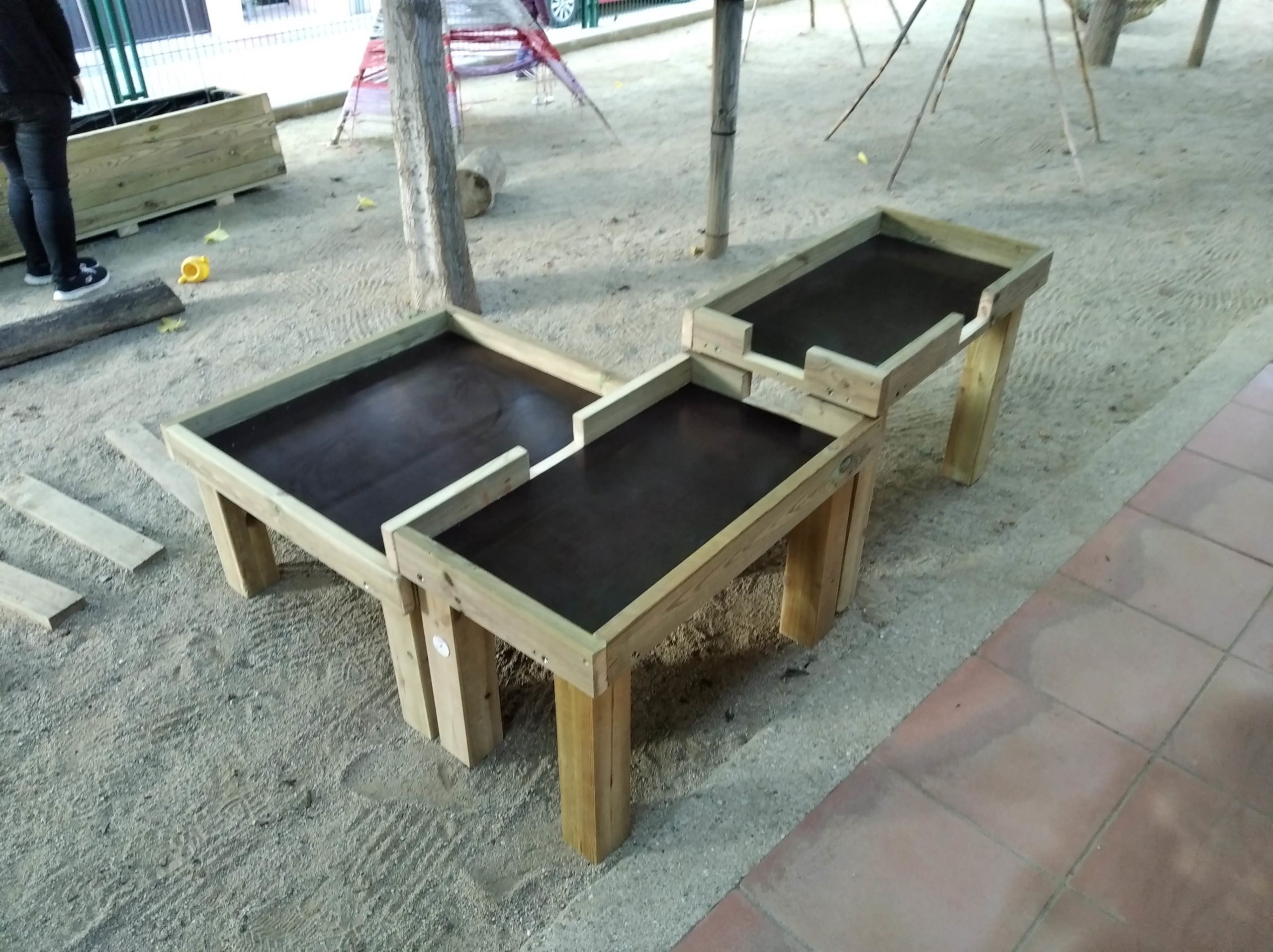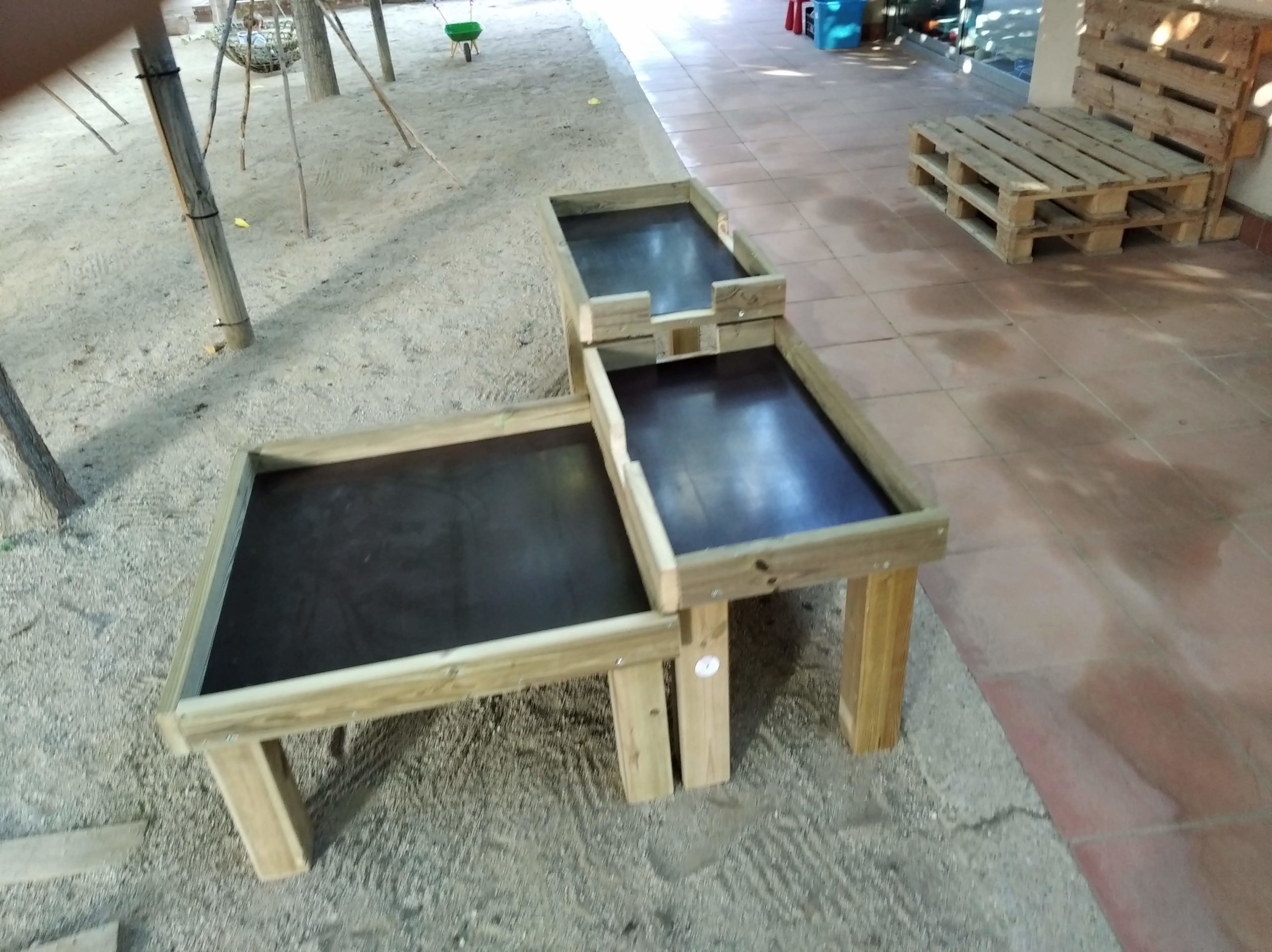 Juego de 3 mesas para experimentar con agua, de madera de okume WBP.