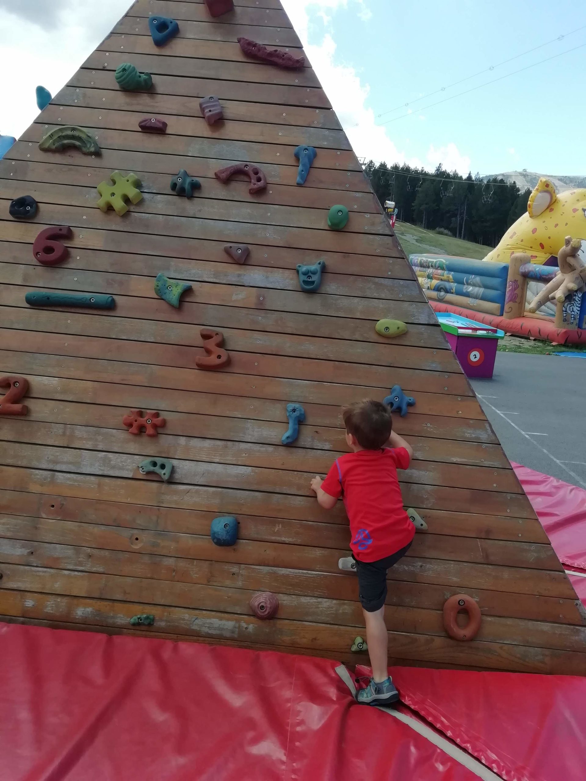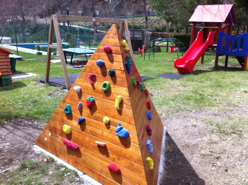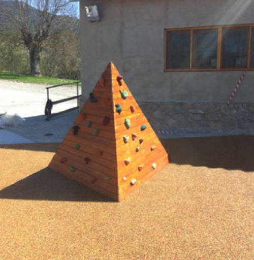 Piràmide, de fusta de pi tractat, amb rocòdrom.