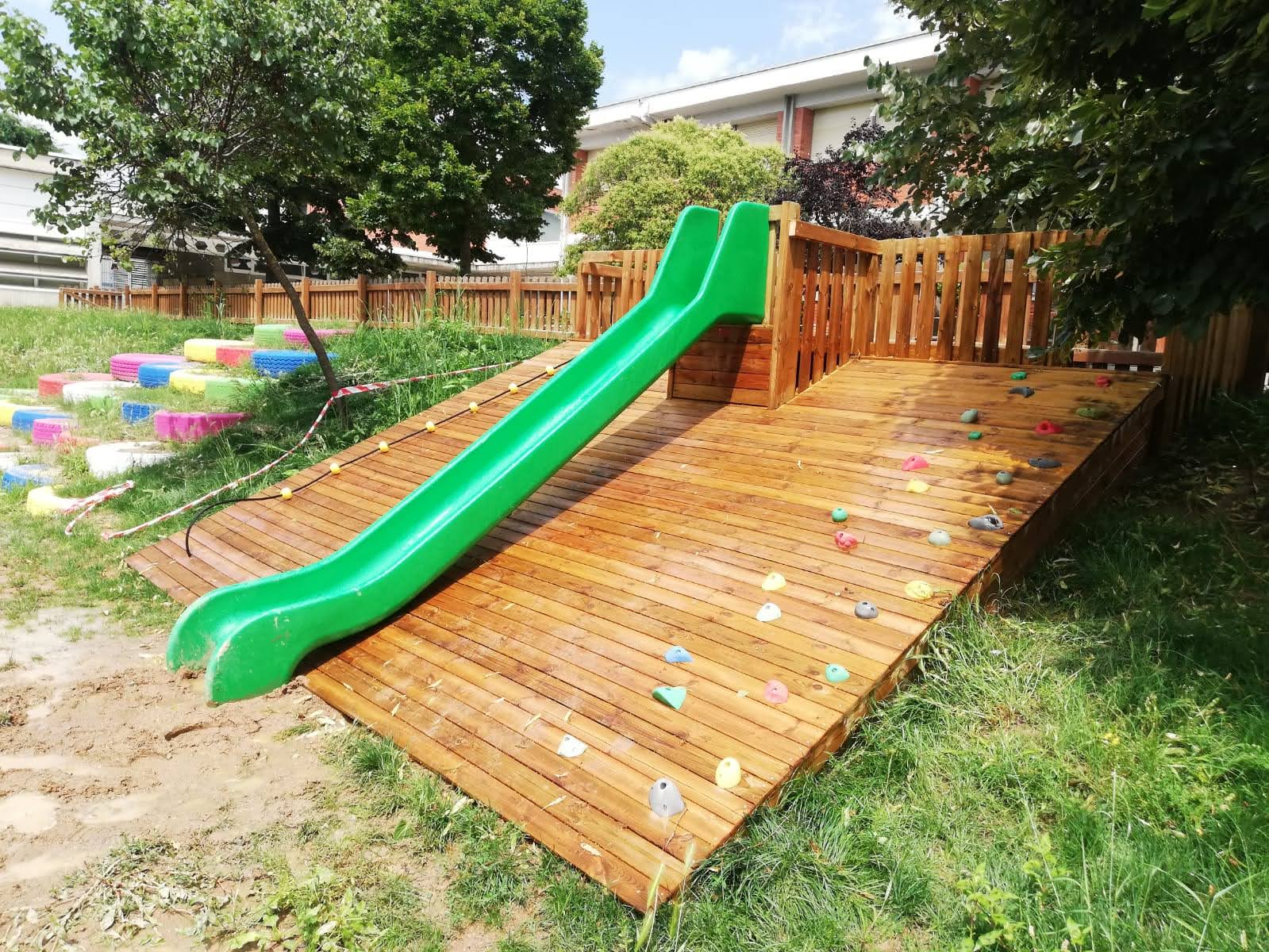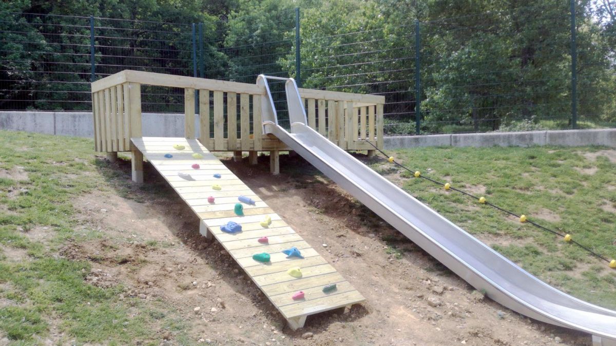 Tobogan, rocòdrom i corda.